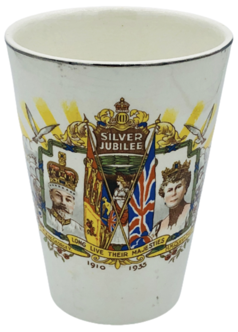 Kaufe Becher antik – Silver Jubilee King George V Queen Mary 1910 – 1935 und entdecke die feine, elegante Welt von Country Castle