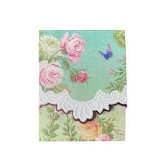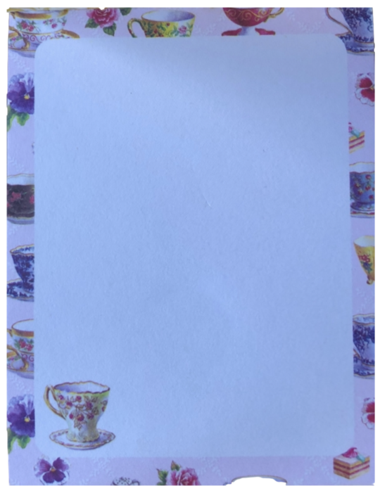 Ein praktischer Block für die Handtasche. Innen weiße Blätter zum Beschriften mit einem Teetassenrand versehen. Der Umschlag ist gestanzt und geprägt.