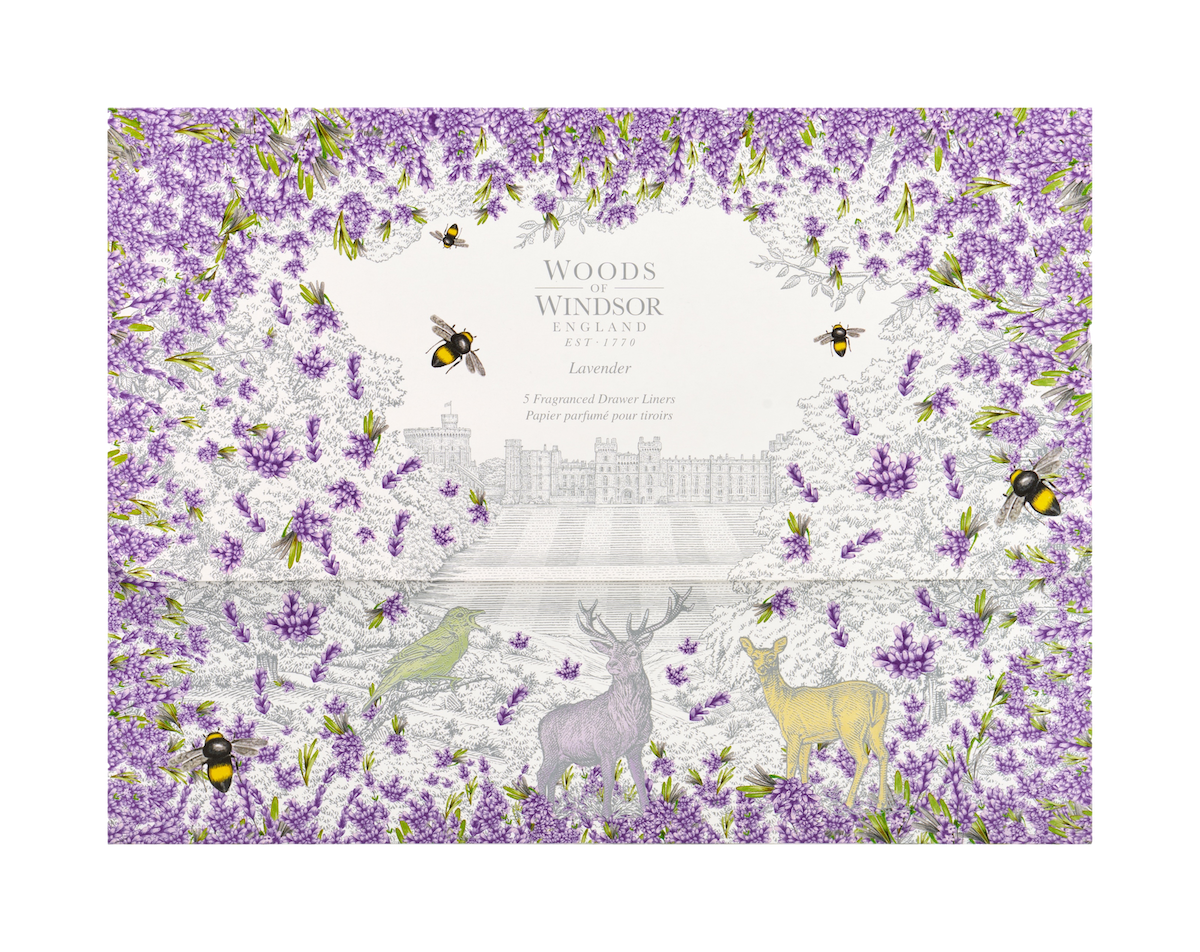- luxuriöses Schrankpapier von Woods of Windsor in der Duftnote Lavendel