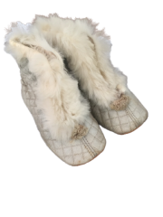- aufwendig handgearbeitete Schuhe mit Steppnähten, Ledersohlen und Fell