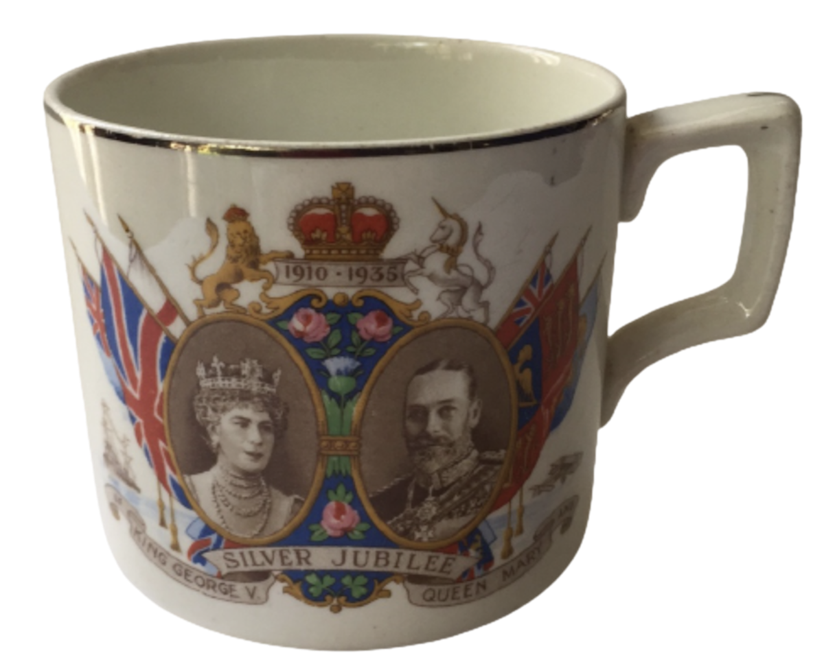 Kaufe Tasse antik Silver Jubilee King Georg V Queen Mary 1910 1935 Meakin und entdecke die feine, elegante Welt von Country Castle