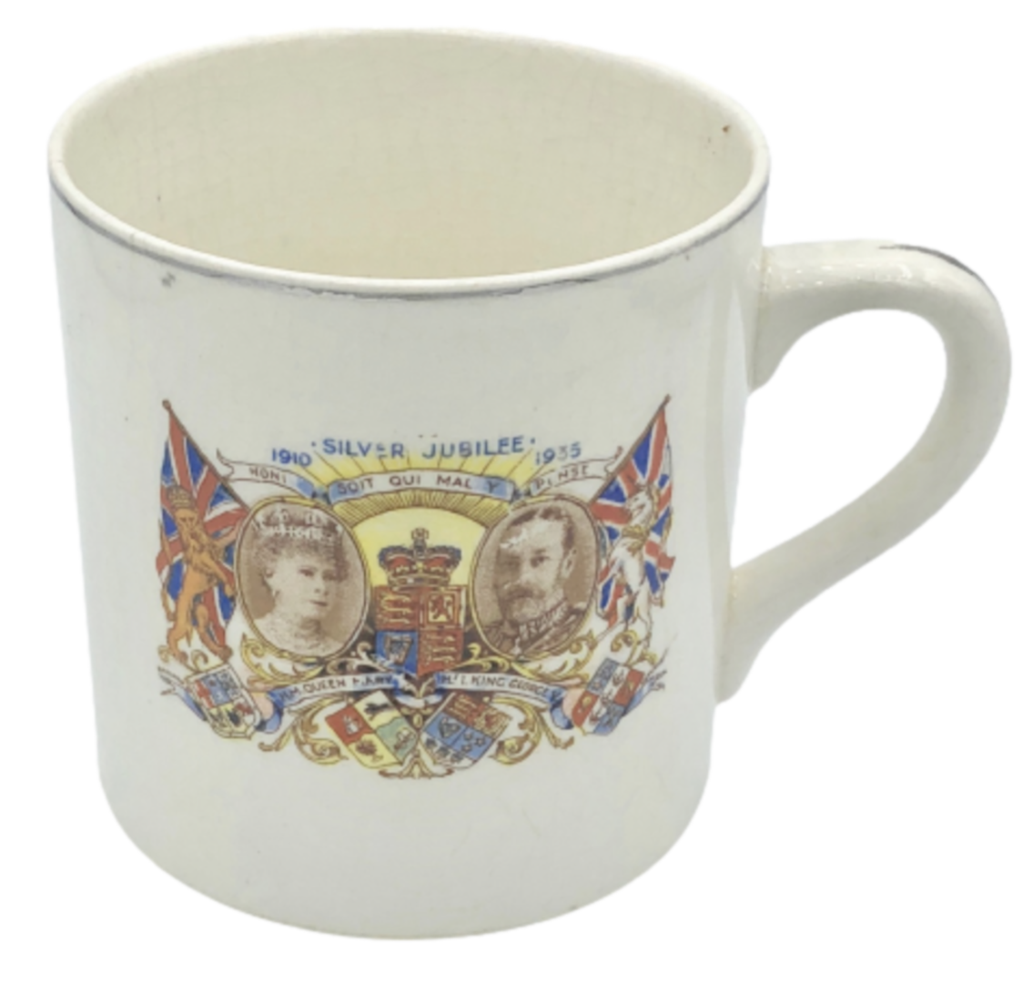 Tasse antik – Silver Jubilee King George V Queen Mary 1935 Union Jack Flaggen
