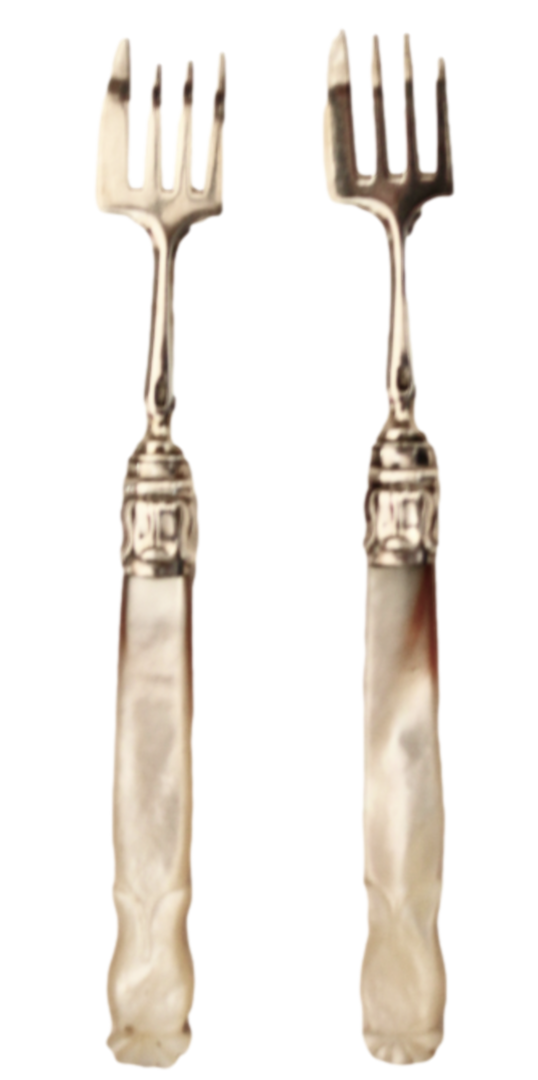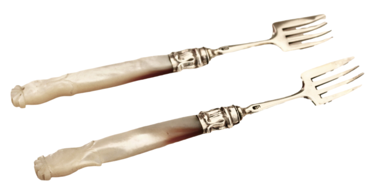 Kaufe Vorlegegabeln Set Perlmutt Sterling Silber aus England um 1850 antik und entdecke die feine, elegante Welt von Country Castle